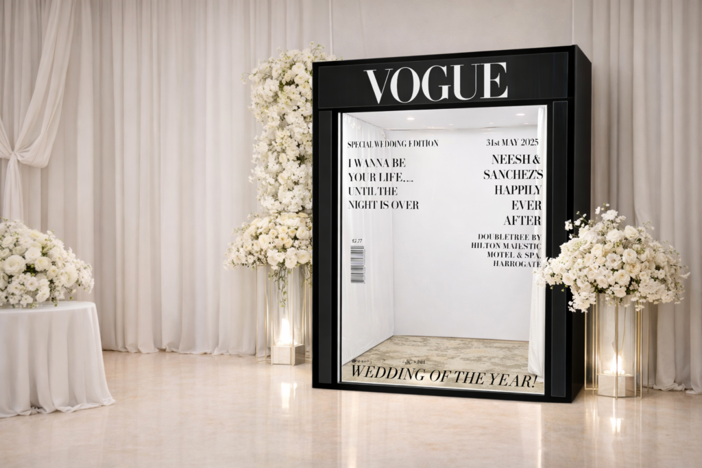 PHOTO BOOTH VOGUE Pretvorite Vaše venčanje ili proslavu u naslovnu stranu magazina. Glamur, stil i nezaboravne uspomene – sve na jednom mestu.Ekskluzivna Vogue kabina dostupna za iznajmljivanje uz kompletnu montažu. Proveri dostupnost Pogledaj ponudu Paketi Classic Minimalistički i elegantan photo booth koji se uklapa u svaki događaj.Uključuje:Vogue kabina dimenzija 210x130x100cmNeograničeno korišćenje tokom trajanjaProfesionalno osvetljenjeBela pozadina sa crnim ramomPrepoznatljiv Vogue natpis Elegance Sofisticiran Vogue setup sa pažljivo odabranim detaljima i personalizacijom po želji, koji prostoru daje poseban stil i jedinstven karakter.Uključuje:Vogue kabina dimenzijaNeograničeno korišćenje tokom trajanjaProfesionalno osvetljenjeBela pozadina sa crnim ramomPrepoznatljiv Vogue natpisDekoracija po izboru (baloni/cveće)Personalizacija (inicijali/datum) Prestige Premium Vogue iskustvo sa lux detaljima i prepoznatljivim VIP ambijentom, sa dodatnom dozom glamura. Zašto izabrati naš Photo Booth Vogue? Luksuzni Vogue dizajn Minimalistička i elegantna kabina sa prepoznatljivim Vogue dizajnom koji svaki događaj pretvara u naslovnu stranu magazina. Profesionalna instalacija Kompletna organizacija transporta, montaže i demontaže, uz tehničku pripremu instalacije na Vašoj lokaciji. Personalizovani detalji Mogućnost prilagođavanja imena i datuma događaja kako bi instalacija bila jedinstvena za Vašu proslavu. Galerija Svaka proslava dobija poseban šarm uz naš prepoznatljivi Vogue okvir. Kontakt